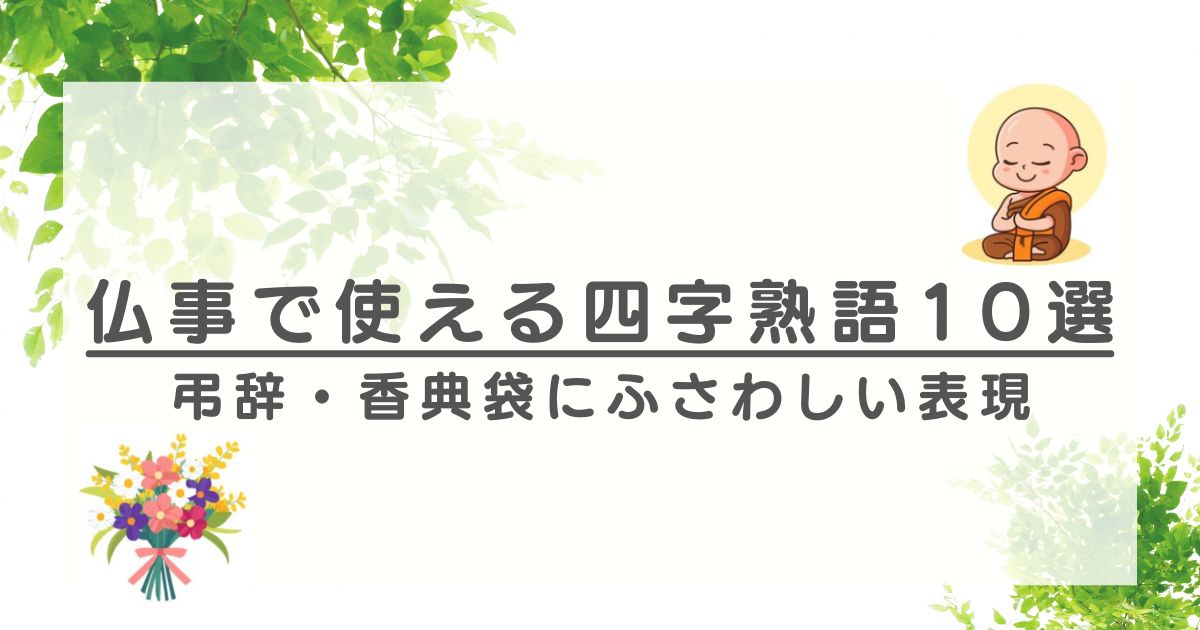 そんな悩みをお持ちの方へ向けて、この記事では仏事の場にふさわしい四字熟語を10個ご紹介します。