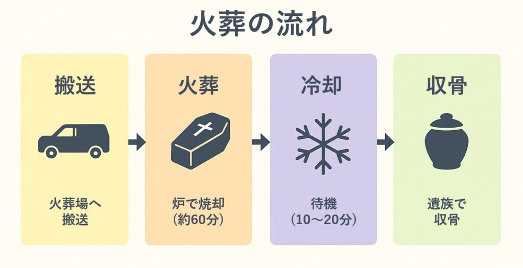 | 冷却 | 炉を冷ます・焼骨を冷ます | 約10〜20分 |