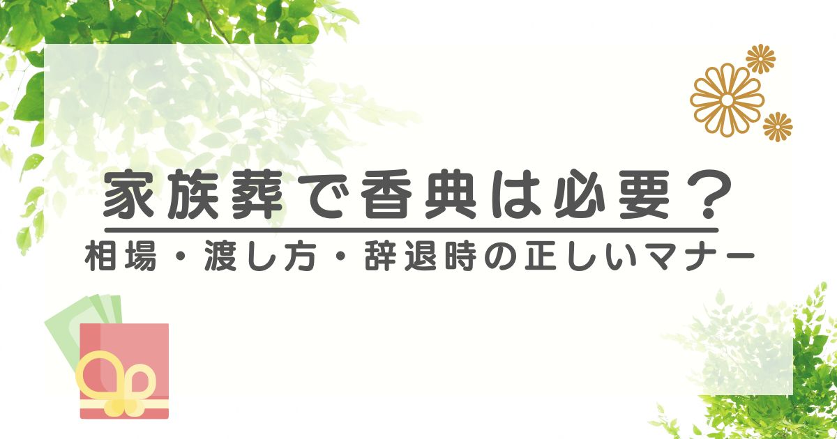 「家族葬で香典は必要?」「家族葬 香典 相場はどのくらい?」そんな疑問を持つ方も多いでしょう。近年、家族葬が増えるにつれて香典の扱いに迷うケースが急増しています。この記事では、家族葬における香典の基本・相場・渡し方・辞退時の対応・マナーを初心者にもわかりやすく解説します。この記事を読めば、香典に関する迷いを解消し、安心して故人を見送る準備が整います。