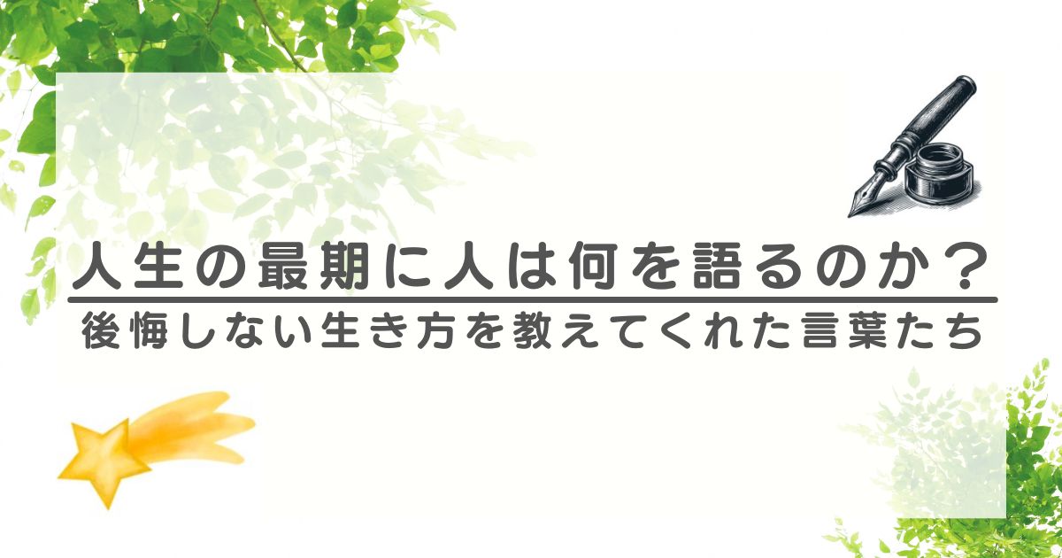 この記事では、著名人たちが残した“最後の言葉”や晩年のインタビューをもとに、私たちが後悔のない人生を歩むためのヒントを探ります。
