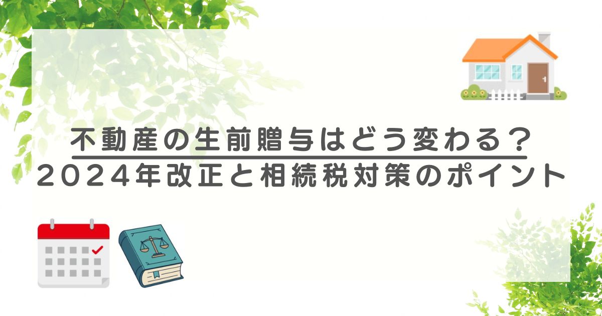 A1. はい。不動産も現金と同様に生前贈与の対象です。2024年以降は相続開始前7年以内の贈与分が相続財産に加算されます。