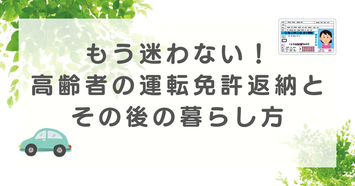 運転免許の返納は、加齢によるリスクを避けるための大切な決断ですが、その後の生活設計も重要です。移動手段を確保し、車なしでも快適に暮らせる環境を整えることで、不安なく生活を送ることができます。地域の支援制度を活用しながら、安心できるライフスタイルを築きましょう。