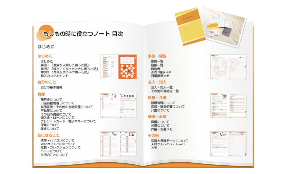 KOKUYO(コクヨ)のエンディングノートは、もしもの時に役立つように日々の生活の中で備忘録としておすすめです。入院時、相続時、日常生活の中で財布やクレジットカードを紛失した時など、様々な「もしもの時」に役立ちますので、まずはこちらから少しずつ始めてみてはいかがでしょうか。